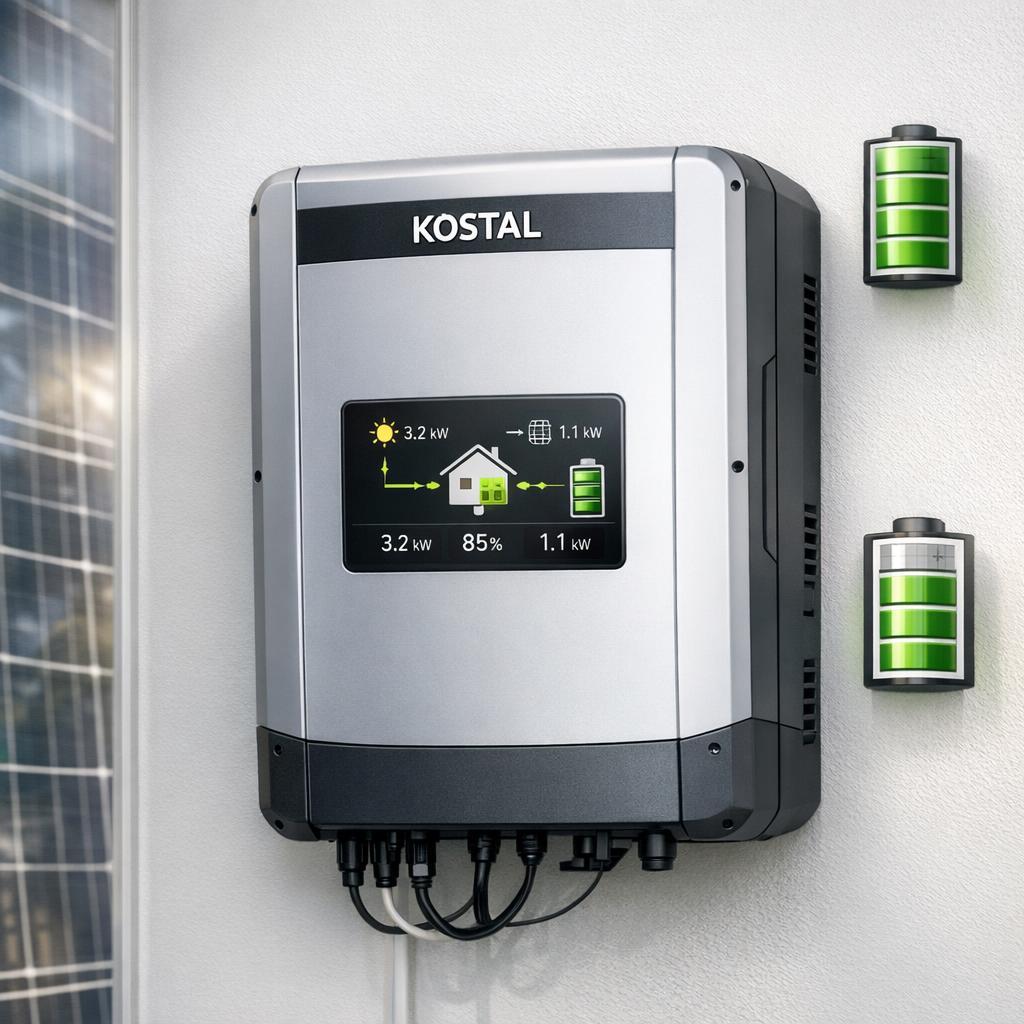 Ein Speicher Wechselrichter von Kostal ist eine technische Einheit, die Gleichstrom aus Solarmodulen in netzkonformen Wechselstrom umwandelt und gleichzeitig den Stromfluss in Batteriespeicher steuert. Er ermöglicht die effiziente Nutzung von selbst erzeugtem Solarstrom, indem er überschüssige Energie zwischenspeichert und bei Bedarf wieder abgibt. Somit verbessert er die Eigenverbrauchsquote und reduziert die Abhängigkeit vom öffentlichen Stromnetz.